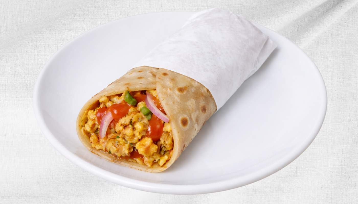 Soft Wrap Filled With Spiced Egg Mixture And Tangy Sauces