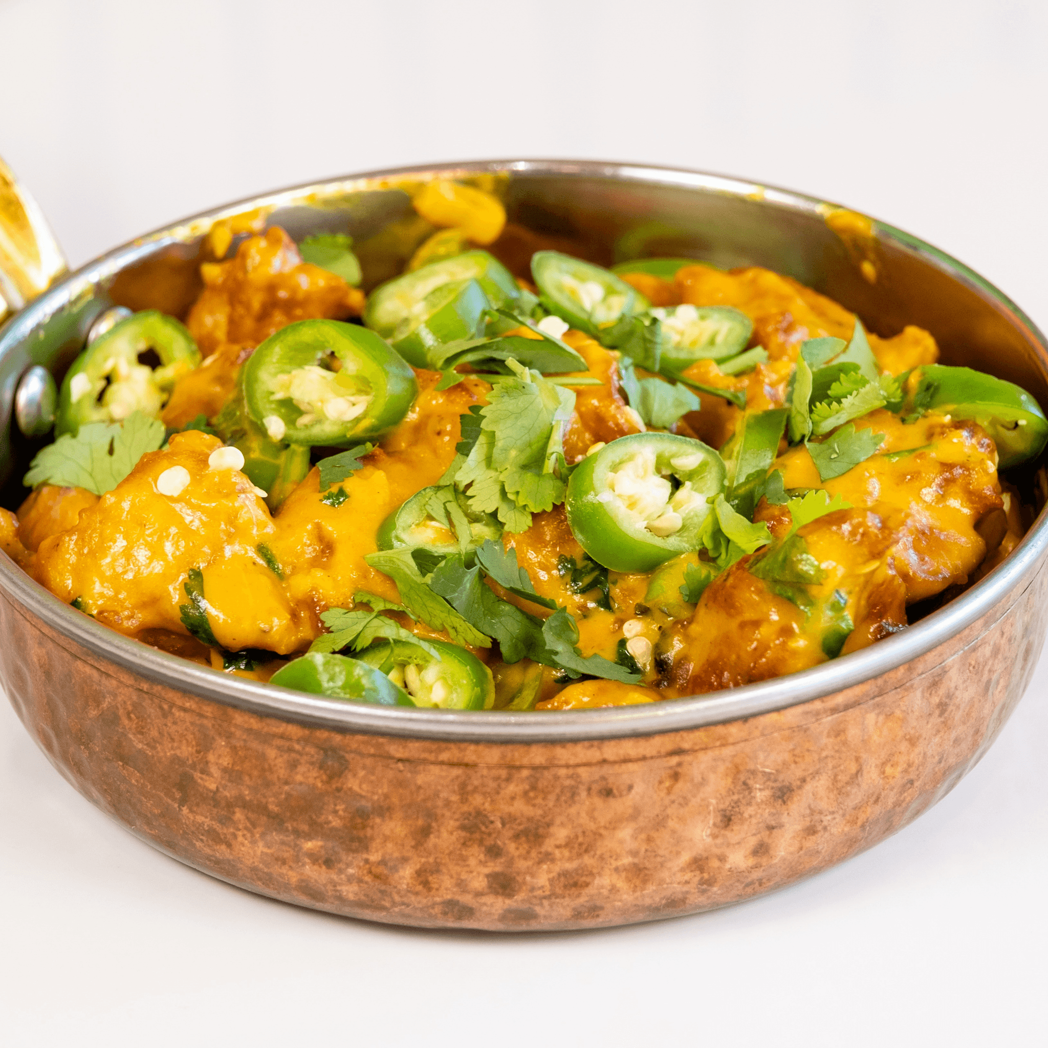 Crispy Chicken Tossed With Jalapeños, House Spl Creamy Sauce And Indian spices. Its Spicy & Creamy!!