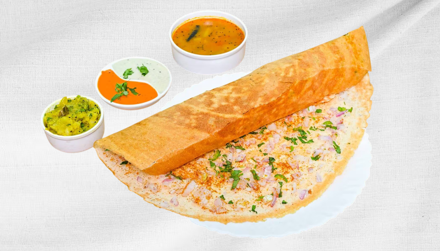 Crispy Dosa Topped With Finely Chopped Onions And Spices.