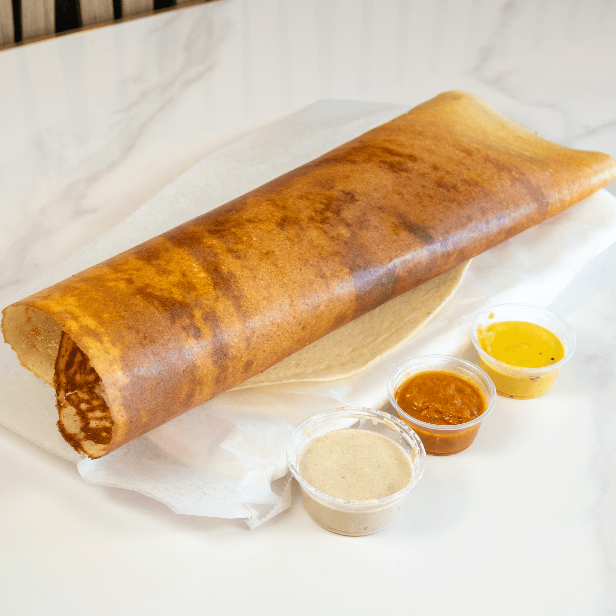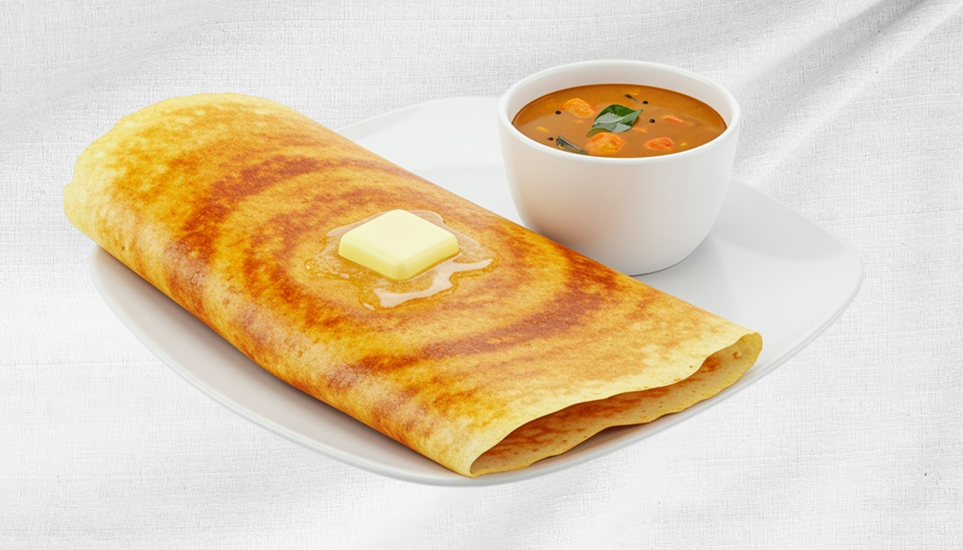 Golden, Crispy Dosa Roasted With Aromatic Ghee.