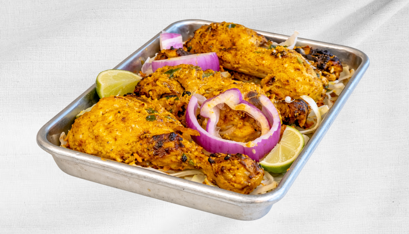 Spiced Chicken drumsticks marinated and grilled in tandoor—juicy and bold.