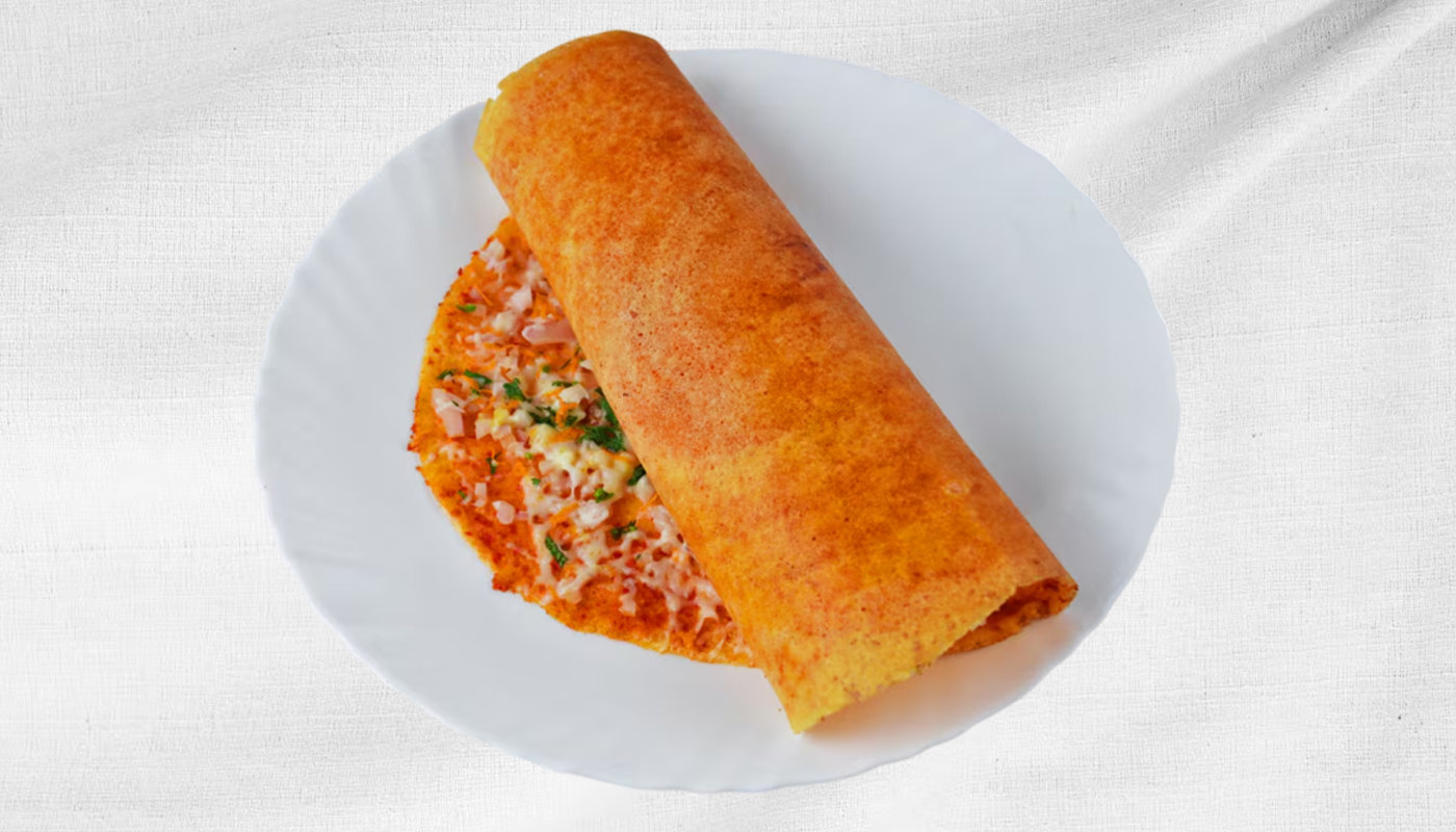 Crispy Dosa Loaded With Melted Cheese For A Fusion Twist.
