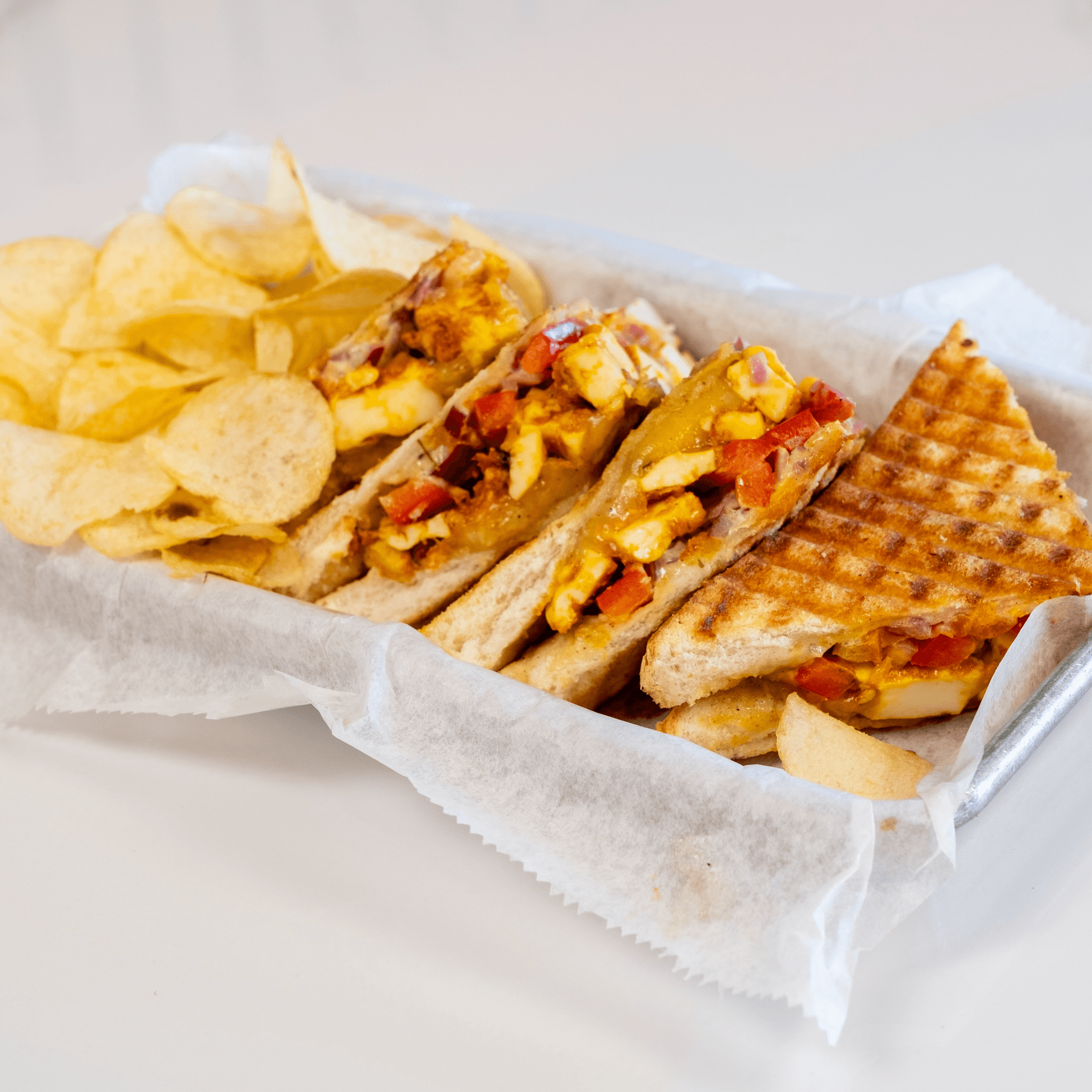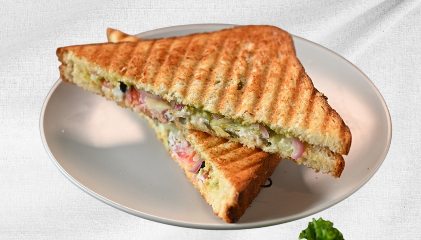 Grilled Sandwich With Paneer, Melted Cheese, And Spicy Spread