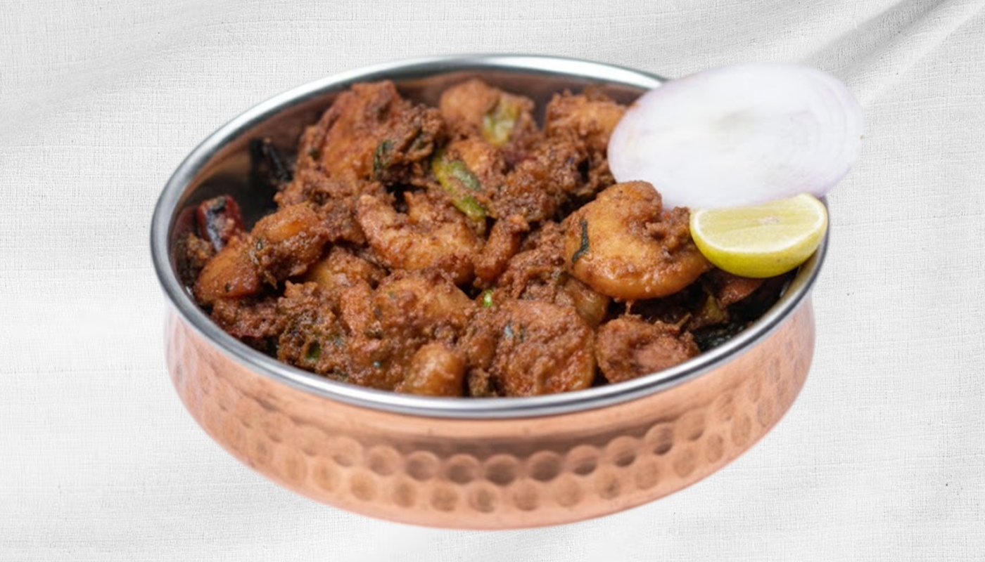 Pan-Roasted Shrimp Cooked With Rich Spices And Dry Masala Finish