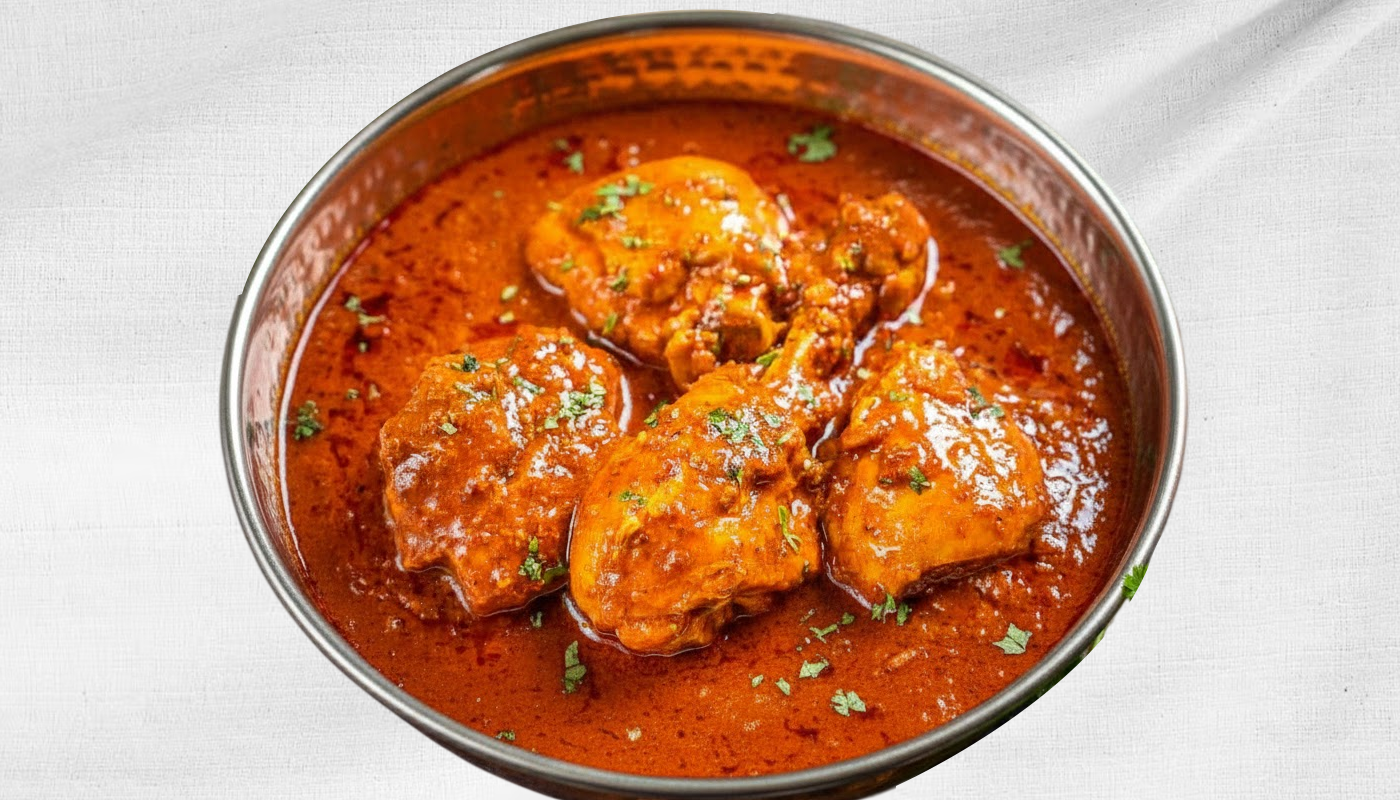 Chicken simmered in spices, onion & tomato sauce and finished with fiery spice powder.