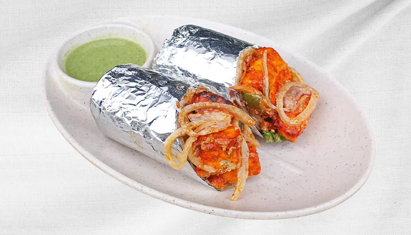 Grilled Paneer Tikka Wrapped With Onions And Chutneys.