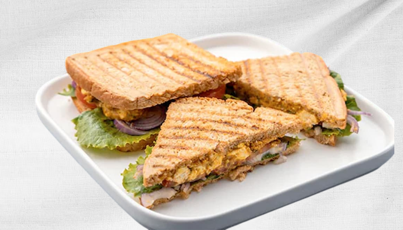 Toasted Sandwich Filled With Chicken Tikka, Vegetables And Chutneys