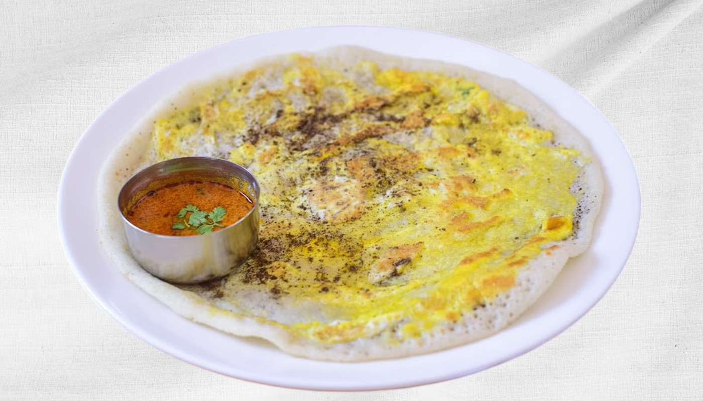 Dosa Layered With A Spiced Egg Mix, Cooked To Perfection.