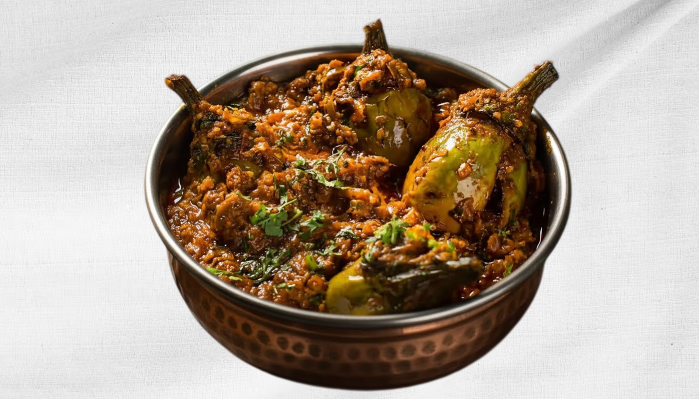 Indian Eggplants Cooked In A Tangy, Nutty Sesame-Coconut Gravy